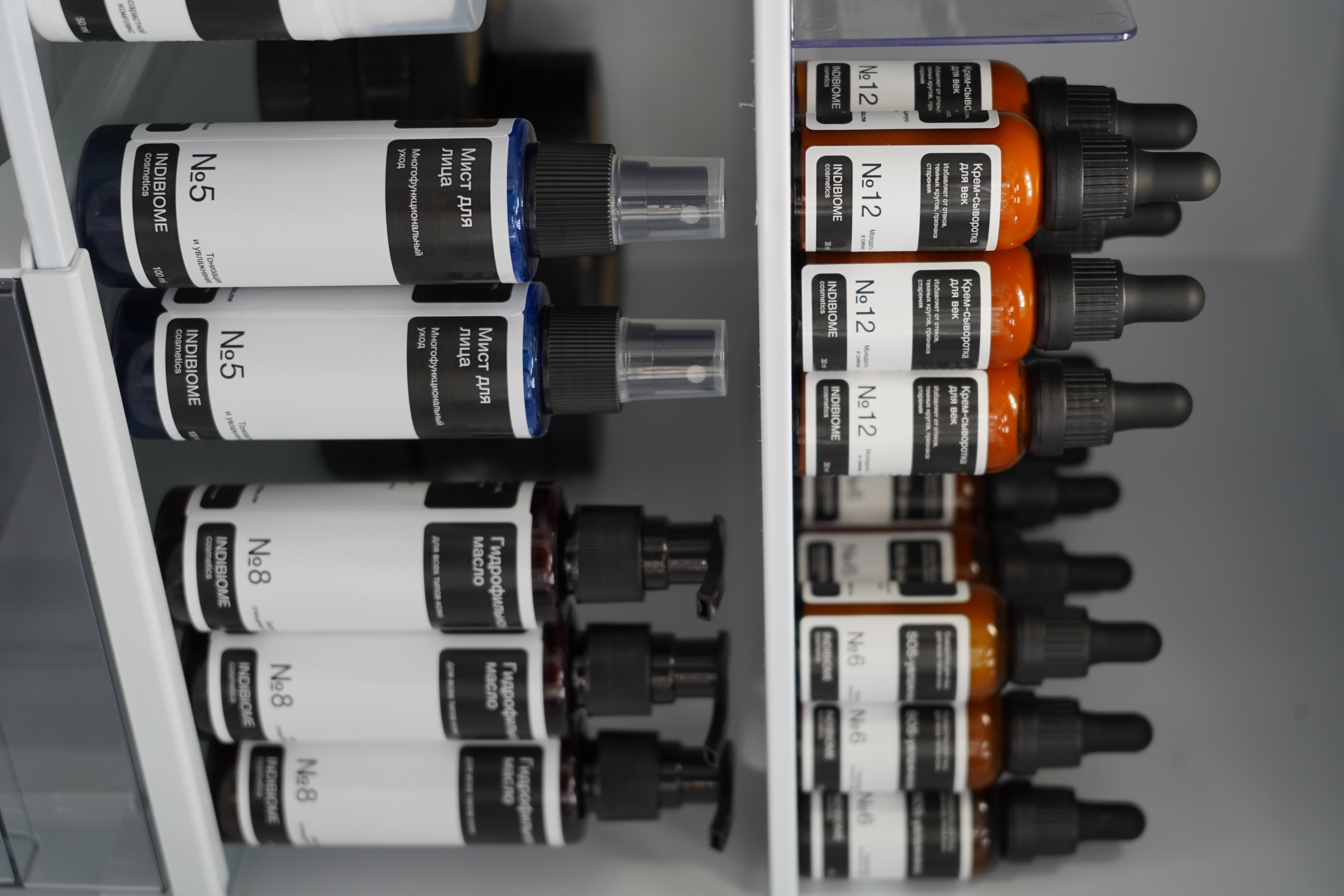 Indibiome сознательно избегает «маркетинг-капель»: если компонент эффективен только при 3–5% — мы ставим 4–5%. Такой подход повышает себестоимость, но даёт результат и строит доверие с клиентом.